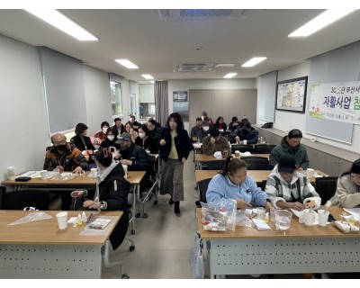 ※교육개요○일 시: 12/8(월) 오후 2시 (1일 4시간)○장 소: 서구지역자활센터 교육장○수료인원: 서구지역 자활근로사업단참여주민 26명○ 강 사: 송 * 란 (한국지식자원개발원 강사)